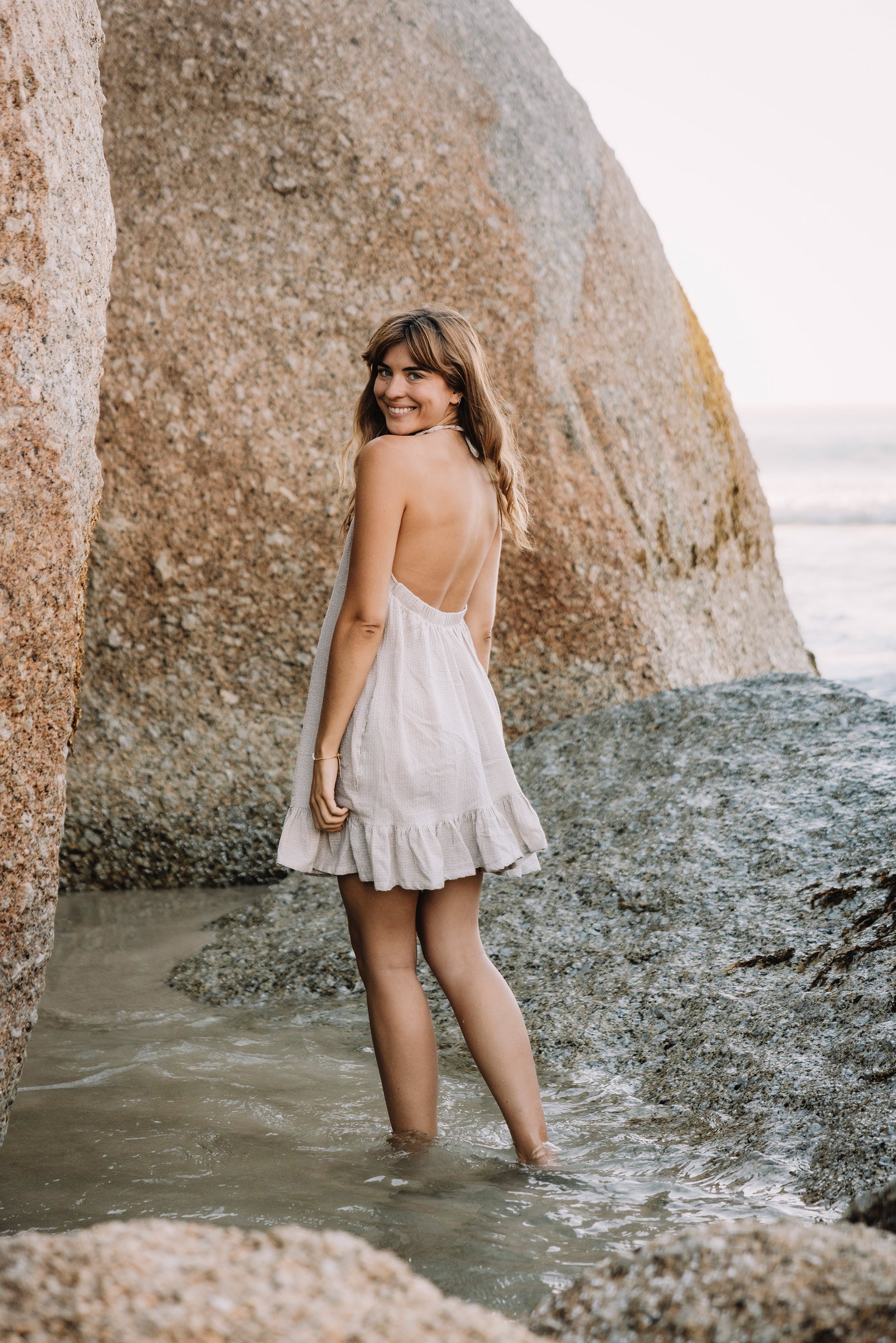 An easy breezy 100% cotton summer dress, our Marlow dress is perfect for those sun-soaked days. Featuring a halter neck tie and soft frill, the combed cotton adds a beautiful texture to this summer dress.