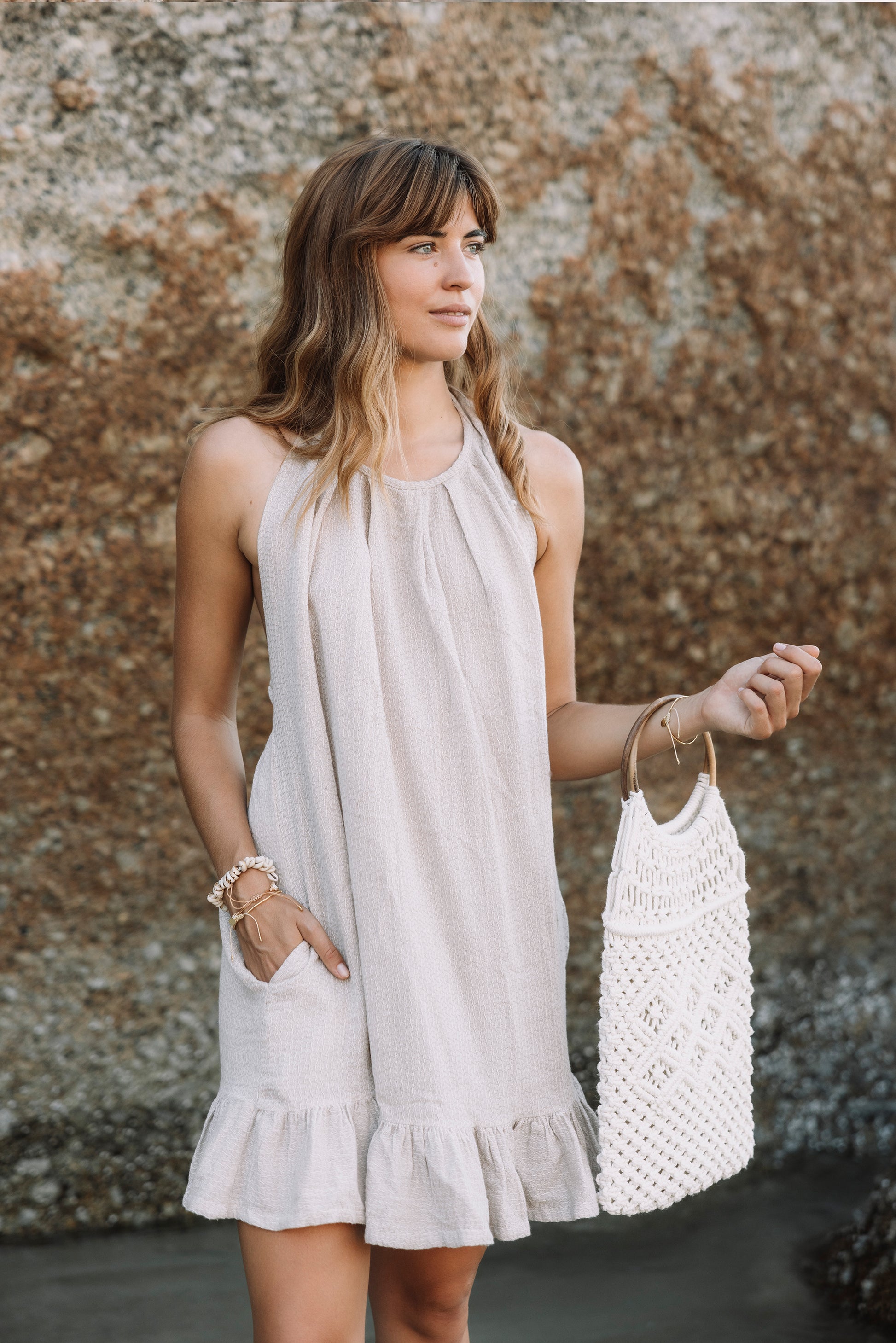 Crafted from lightweight and breathable combed cotton, our Marlow Summer Dress is a perfect companion for warm beach days and hot, balmy evenings. The flowing silhouette and pockets allows for maximum comfort. Available in both stone and white.