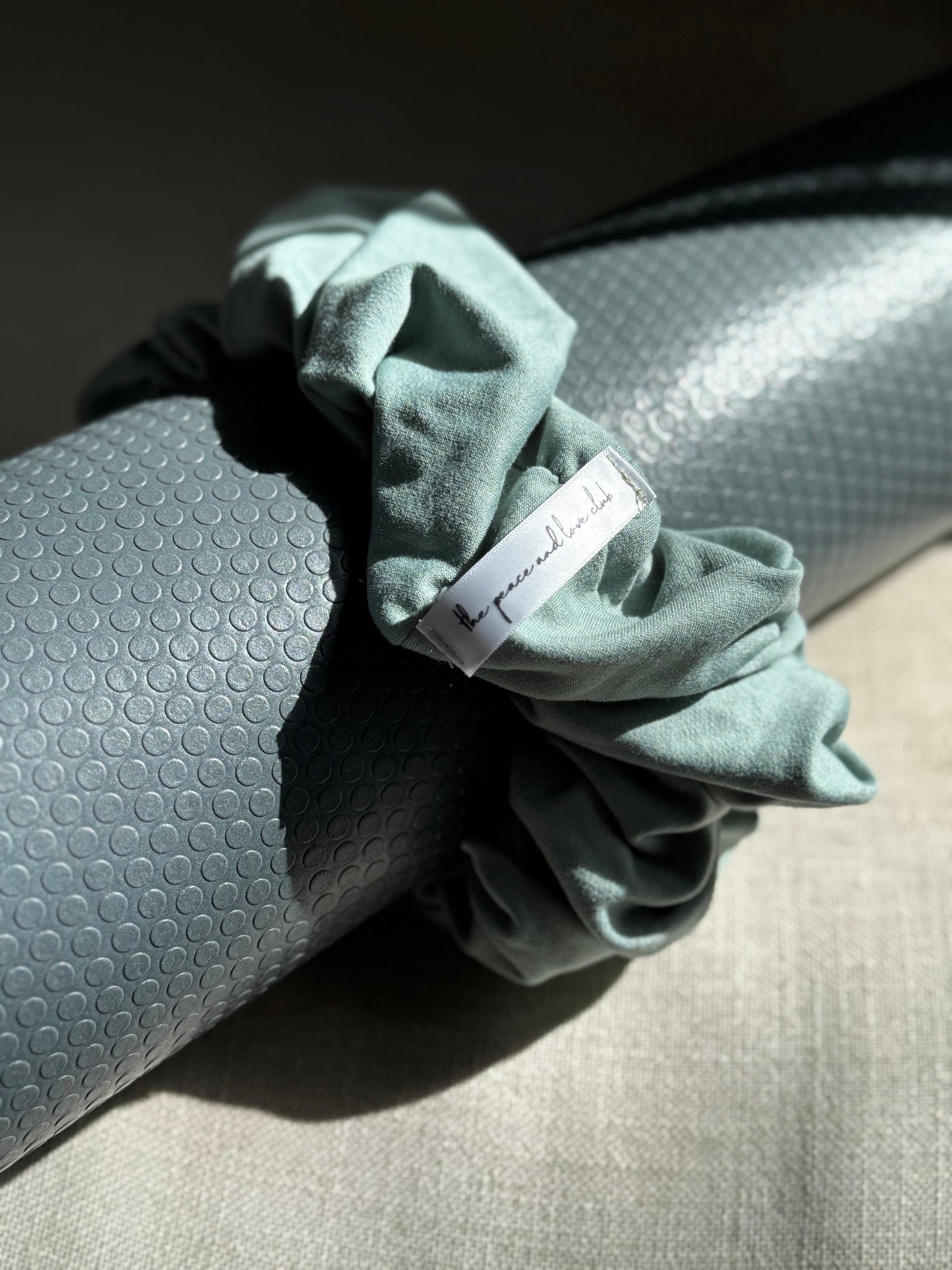 Plus, we think it gives your mat a little je ne sais quoi , no? Made from soft, breathable fabric, our Mat Scrunchies come in four beautiful colour ways and can simply be thrown in the wash with your gym clothes.