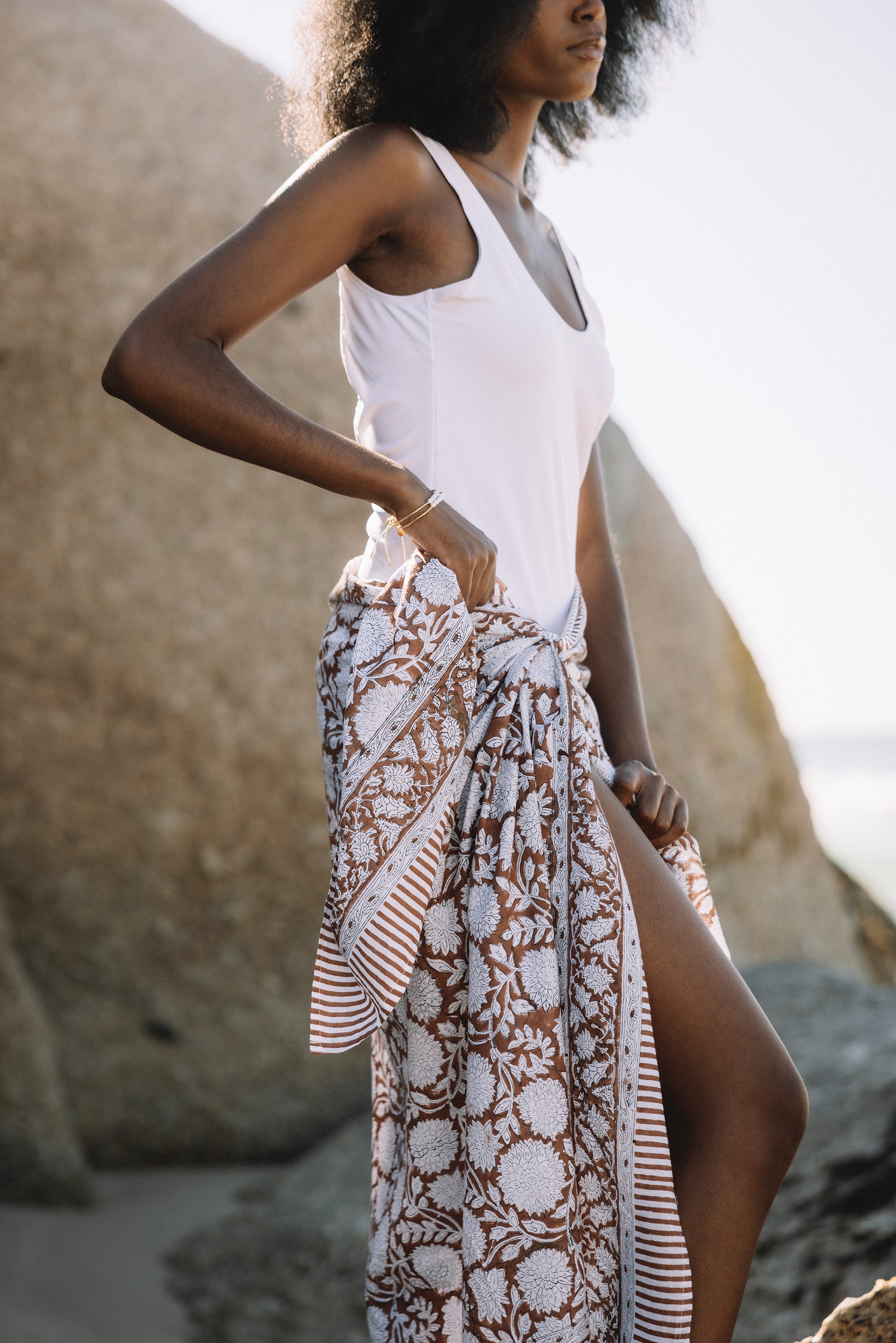 Cover up with our hand-printed Teddy Beach Sarong. Made from 100% cotton in India, this sarong is giving us all those beachy boho vibes we love. Tie around your waist or across your bodice after a salty ocean dip.