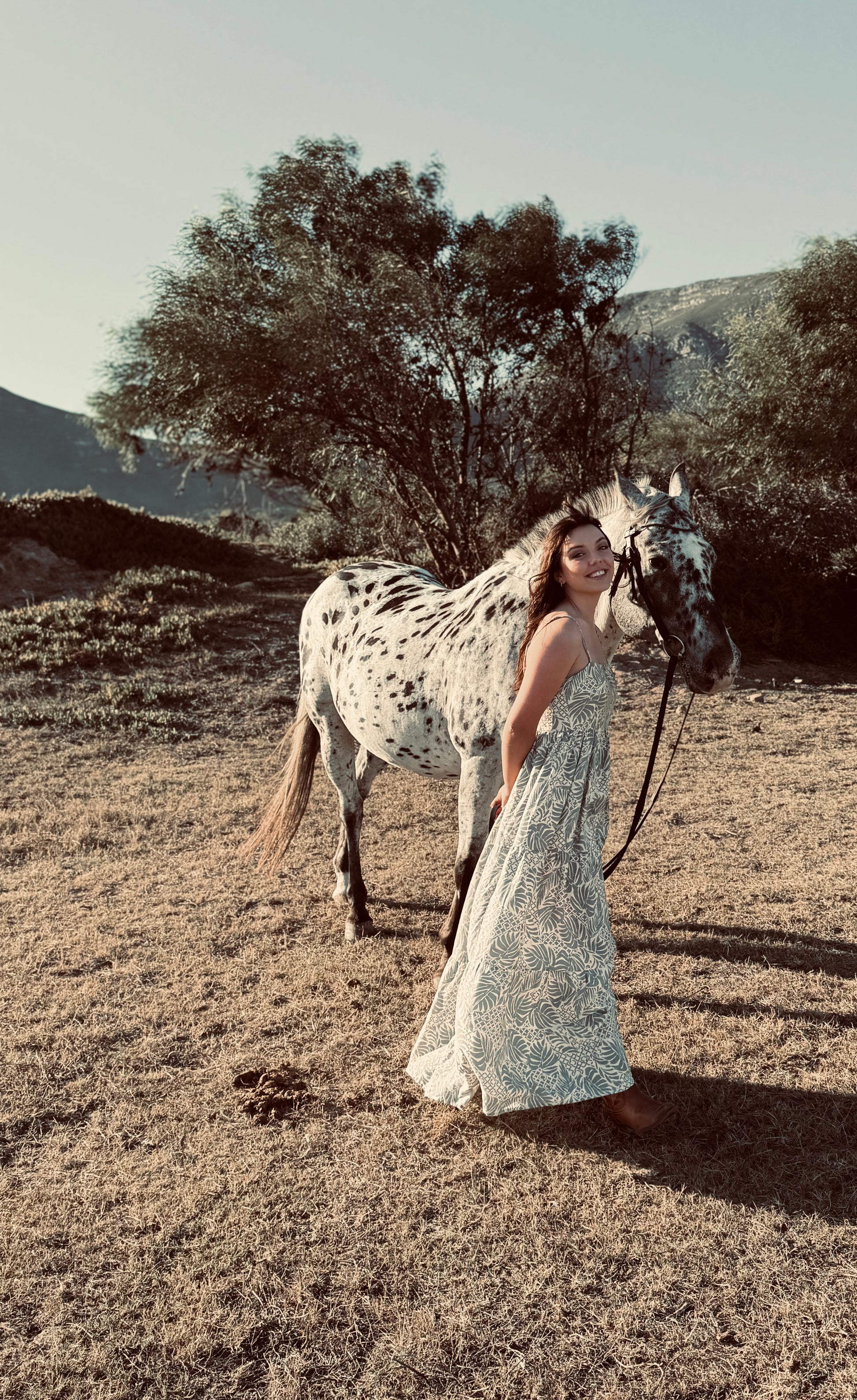 Designed with a breezy, tiered silhouette, this maxi is made from ultra-soft, breathable fabric that drapes beautifully, creating a feminine, flowy look. Transition seamlessly into autumn by layering it with a cozy cardigan and boots, or wear it solo for a dreamy, free-spirited style.